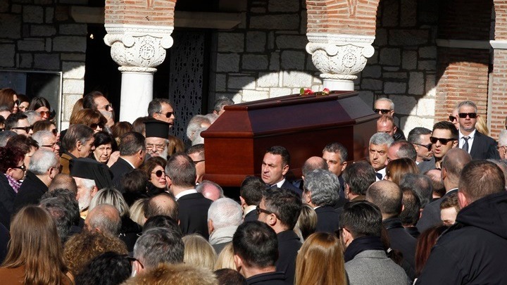Η κηδεία πραγματοποιήθηκε στο Κοιμητήριο Κηφισιάς. Στο τελευταίο αντίο ήταν παρόντες, μεταξύ άλλων, ο πρώην πρωθυπουργός Αντώνης Σαμαράς, ο επίτροπος στην Κομισιόν Δημήτρης Αβραμόπουλος, ο πρόεδρος της Ενωσης Κεντρώων Βασίλης Λεβέντης, ο επικεφαλής του Ποταμιού, Σταύρος Θεοδωράκης, ο εκπρόσωπος του ΚΙΝΑΛ Παύλος Χρηστίδης και η πρόεδρος της ΕΣΗΕΑ Μαρία Αντωνιάδου.