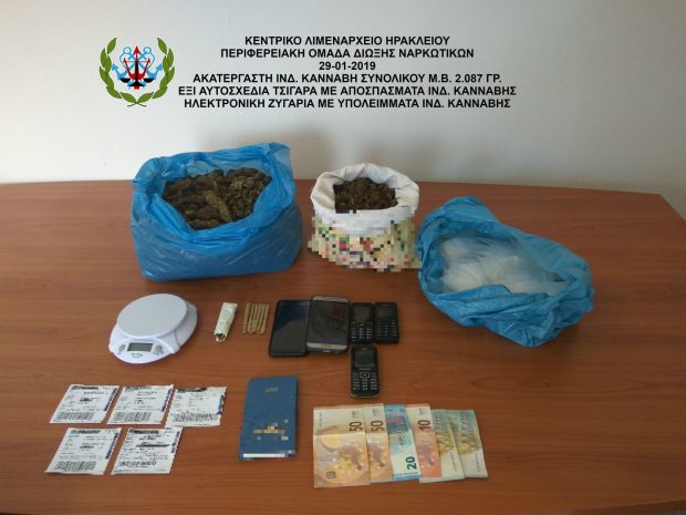 Συγκεκριμένα, σε έλεγχο που διενεργήθηκε στους ανωτέρω κατά την αποβίβασή τους από Ε/Γ-Ο/Γ πλοίο στο λιμένα Ηρακλείου, βρέθηκαν εντός χειραποσκευής που έφερε ο 29χρονος αλλοδαπός και κατασχέθηκαν: