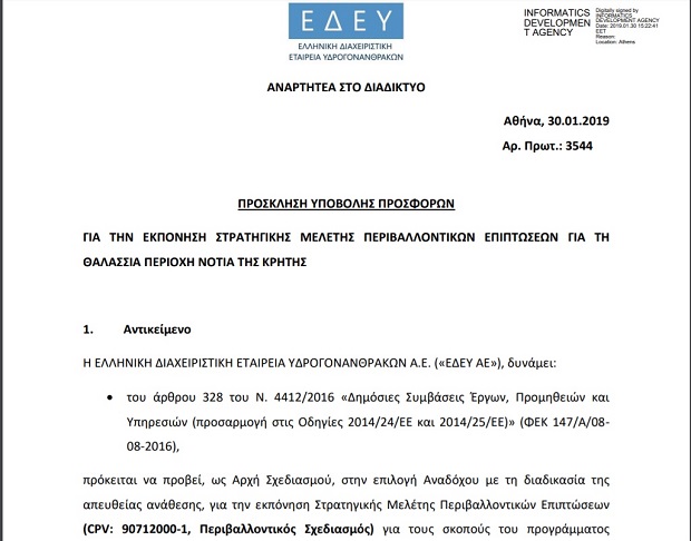 Η ΕΔΕΥ έχει αποφασίσει να μην προκηρύξει την παραχώρηση της θαλάσσιας περιοχής νότιας της Κρήτης, αλλά να αξιοποιήσει τη δυνατότητα που δίνεται από την ευρωπαϊκή νομοθεσία και να κινηθεί με πιο ευέλικτο τρόπο, αποτεινόμενη η ίδια σε δυνητικούς ενδιαφερομένους.