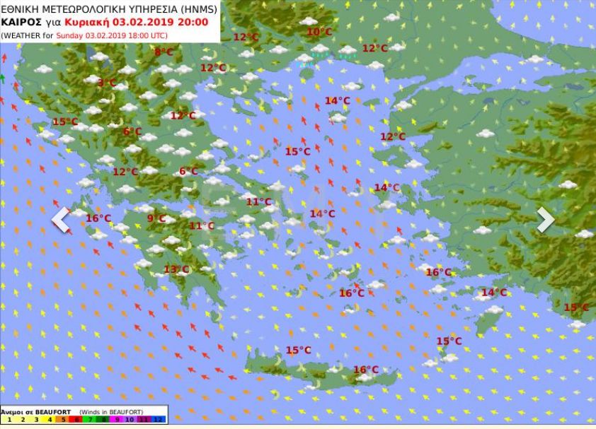 Θερμοκρασία: Από 11 έως 19 βαθμούς Κελσίου. Στην Ήπειρο κατά τόπους 3 με 4 βαθμούς χαμηλότερη.