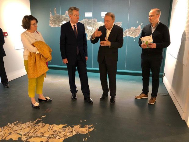 Τον Πρέσβη των ΗΠΑ στην Ελλάδα Geoffrey Payat ξενάγησαν στην μεγάλη περιοδική έκθεση “Κρήτη Αναδυόμενες Πόλεις: Άπτερα-Ελεύθερνα-Κνωσός” ο Καθηγητής του Πανεπιστημίου Κρήτης Νίκος Σταμπολίδης και ο Εντεταλμένος Σύμβουλος Ανάπτυξης της Περιφέρειας Κρήτης Δημήτρης Μιχελογιάννης.