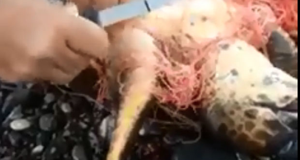 Συγκεκριμένα, απεγκλώβισαν χελώνα, που έμπλεξε στα δίχτυα ψαράδων στην περιοχή και δεν μπορούσε να διαφύγει.