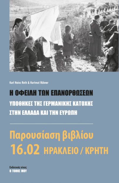 Ο εκδοτικός οίκος «Ο ΤΟΠΟΣ ΜΟΥ» της Εθελοντικής Ομάδας Δράσης Ν. Πιερίας, σας προσκαλεί στην παρουσίαση της ελληνικής έκδοσης του βιβλίου των K. H. Roth και H. Rübner, «Η οφειλή των επανορθώσεων: υποθήκες της γερμανικής κατοχής στην Ελλάδα και την Ευρώπη»