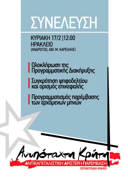 H ΑΝΥΠΟΤΑΧΤΗ ΚΡΗΤΗ καλεί σε γενική συνέλευση με θέματα: