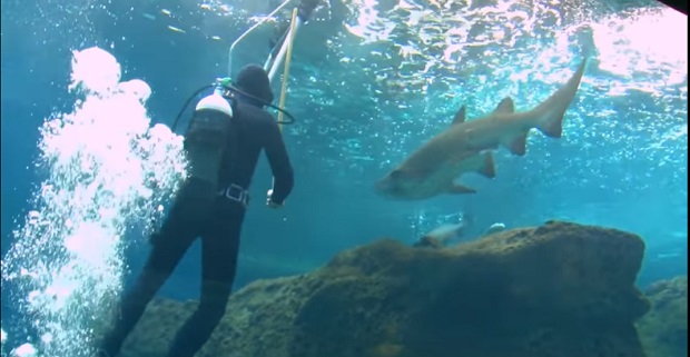 Το μεροκάματο του τρόμου, κολυμπώντας ανάμεσα σε καρχαρίες στο ενυδρείο Κρήτης! Αν παραπονιέστε ότι η δουλειά σας είναι δύσκολη ή ακόμα και επικίνδυνη τότε τι έχετε να πείτε για τους δύτες του ενυδρείου της Κρήτης που η ρουτίνα της εργασίας τους είναι να κολυμπάνε ανάμεσα σε τεράστιους καρχαρίες. Η διαδικασία του καθαρισμού των εσωτερικών γυάλινων επιφανειών στις δεξαμενές του ενυδρείου Κρήτης γίνεται από θαρραλέους δύτες που δεν διστάζουν να κολυμπήσουν ανάμεσα σε στους τέσσερις επιβλητικούς καρχαρίες, απλά κρατώντας ο ένας από τους δύο ένα ξύλινο κοντάρι για να τους απωθεί!!!