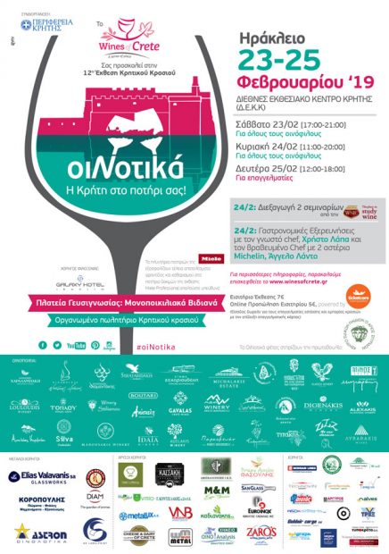Οι οινοποιοί της Κρήτης, με την στήριξη της Περιφέρειας Κρήτης, προετοιμάζονται για 12η χρονιά να καλωσορίσουν τους φίλους του Κρητικού Αμπελώνα στην Έκθεση «ΟιΝοτικά», που θα πραγματοποιηθεί στις 23, 24 και 25 Φεβρουαρίου 2019, στο Διεθνές Εκθεσιακό Κέντρο Κρήτης (Δ.Ε.Κ.Κ), στις Γούρνες Ηρακλείου.