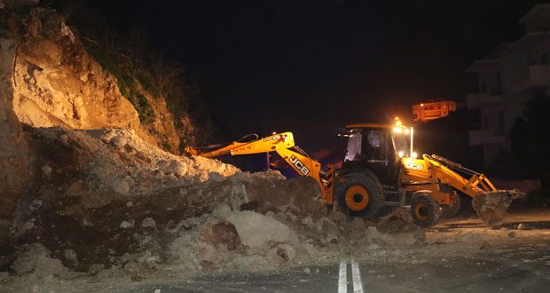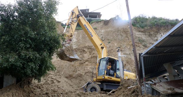 Ωστόσο, σημειώθηκε άλλη μία κατολίσθηση, αυτήν την φορά στην οδό Ήρωνος, όπου ο δρόμος έκλεισε. Τα σπίτια των κατοίκων της περιοχής έχουν αποκλειστεί.