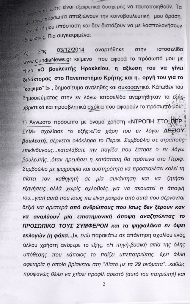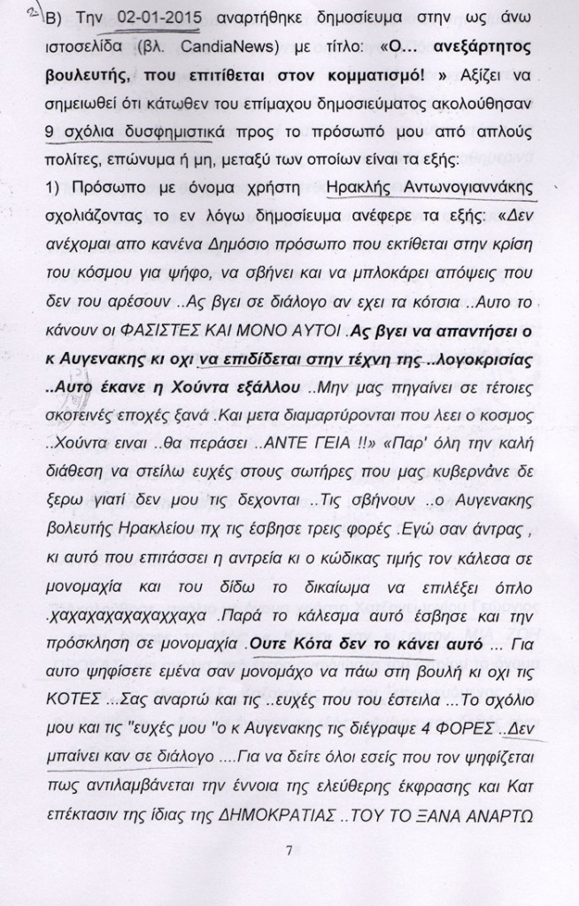 Ο κ. Αυγενάκης ζητά την καταδίκη του δημοσιογράφου επειδή τόλμησε: