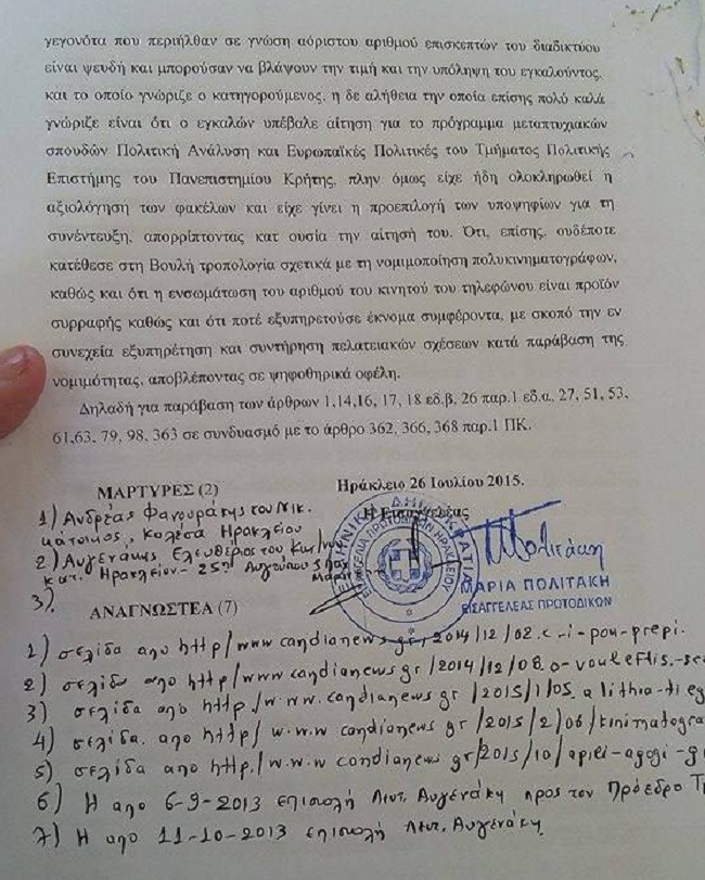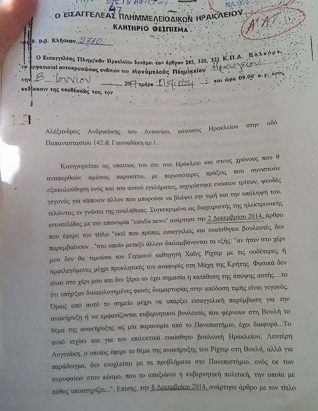 Δείτε το αρχικό κλητήριο θέσπισμα και την αρχική μήνυση Αυγενάκη και σε… αναγνώστες!