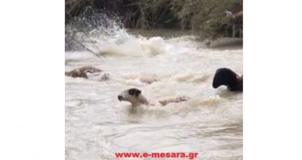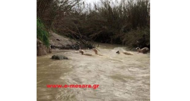 Σύμφωνα με το e-mesara.gr, o κτηνοτρόφος Μανώλης Καργάκης, δέχτηκε το πλήγμα της κακοκαιρίας, όταν ο Γεροπόταμος “φούσκωσε” και του πήρε πάνω από 100 πρόβατα που έβοσκαν στην περιοχή.
