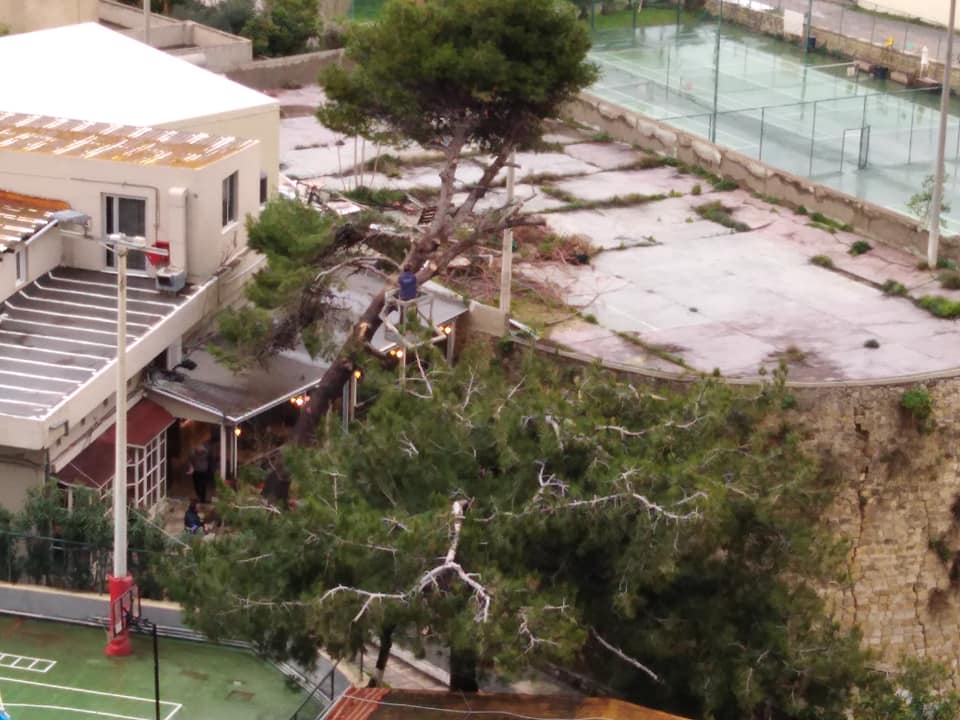Ο εντεταλμένος σύμβουλος του δήμου Ηρακλείου για το Πράσινο, Νίκος Φακουρέλης, υποστήριξε ότι κόπηκαν μόνο κάποια τμήματα που είχε πάρει ο άνεμος, ενώ όλη η διαδικασία έχει νόμιμα κι ενώ ο ίδιος ήταν παρών.