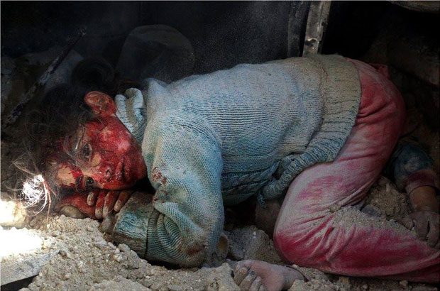 Οι φωτογραφίες του φωτογράφου Ανάς Αλ-Ντιάμπ που δημοσιεύει το Γαλλικό Πρακτορείο Ειδήσεων είναι «γροθιά στο στομάχι». Ένα κοριτσάκι, ματωμένο, σκονισμένο, στριμωγμένο κάτω από τα ερείπια του σπιτιού του, περιμένει να σωθεί. Δίπλα της, η νεκρή αδερφούλα της. Τα χεράκια της φαίνονται άψυχα κάτω και δίπλα στο παιδί με το ματωμένο πρόσωπο και τα τρομαγμένα μάτια, που μόλις έζησε την απόλυτη φρίκη…