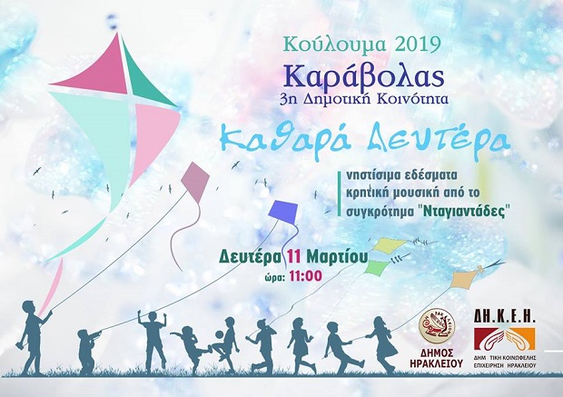 Ο Δήμος Ηρακλείου γιορτάζει τα Κούλουμα στον Καράβολα, με το πέταγμα του χαρταετού, με δωρεάν σαρακοστιανά εδέσματα για όλους και κρητική παραδοσιακή μουσική, χορό και τραγούδι από το συγκρότημα «Νταγιαντάδες».