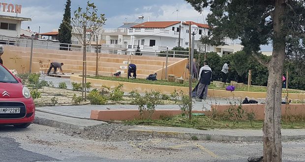 Σύμφωνα με τα όσα αναφέρει ο κ. Μανώλης Ταμιωλάκης, στην σελίδα Ηράκλειο Κουασιμόδια πόλη, σήμερα βρέθηκε στο σημείο συνεργείο, το οποίο αποτελείτο από πολλά άτομα, για την αποκατάσταση του πάρκου.