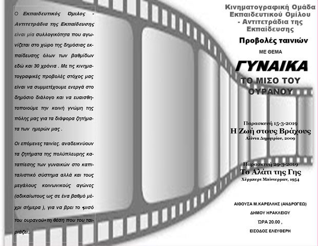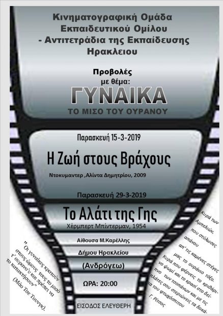 Προβολή ταινίας “Η Ζωή στους Βράχους” από την Κινηματογραφική Ομάδα Εκπαιδευτικού Ομίλου – Αντιτετράδια της Εκπαίδευσης Ηρακλείου