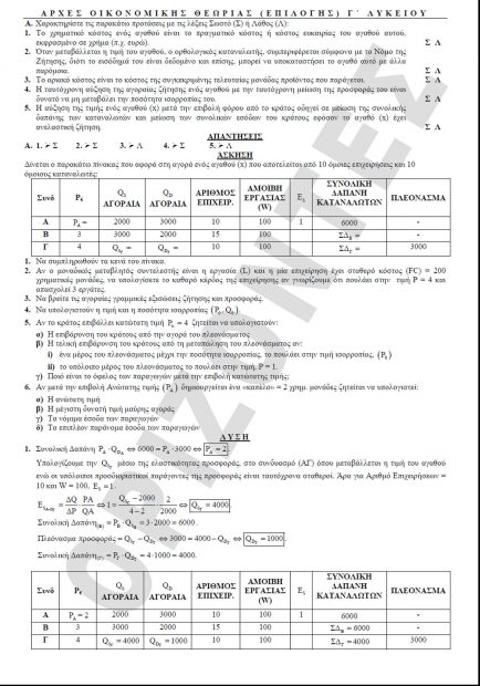 ΑΡΧΕΣ ΟΙΚΟΝΟΜΙΚΗΣ ΘΕΩΡΙΑΣ (ΕΠΙΛΟΓΗΣ) Γ΄ ΛΥΚΕΙΟΥ