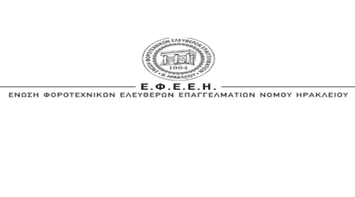 Η Ένωση Φοροτεχνικών Ελευθέρων Επαγγελματιών Νομού Ηρακλείου (Ε.Φ.Ε.Ε.Η.), διοργανώνει Φορολογικό σεμινάριο με...