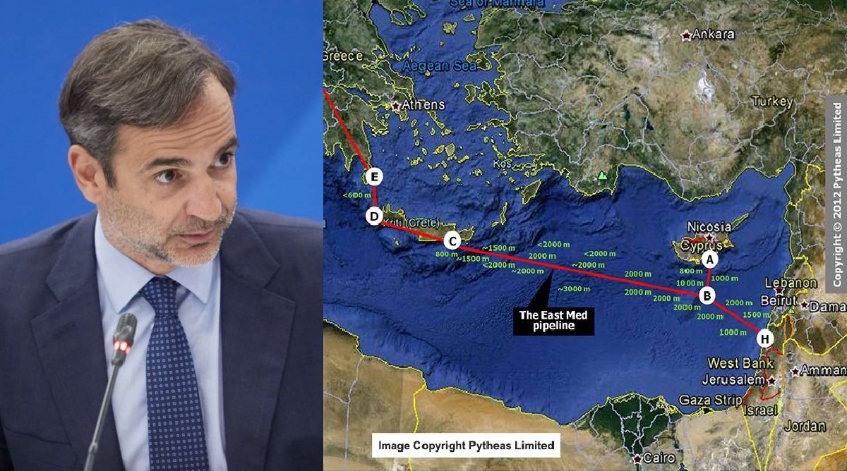 Το σχέδιο του EastMed Gas Pipeline (EMGP), η απόφαση για την κατασκευή του οποίου επικυρώθηκε στη σύνοδο της Ιερουσαλήμ (20.3.2019), προβλέπει την κατασκευή ενός υποθαλάσσιου αγωγού 1.900 χλμ. κατά μήκος της Ανατολικής Μεσογείου με στόχο την ενεργειακή τροφοδοσία της Ευρώπης. Ο αγωγός αυτός θα ξεκινάει από τις υποθαλάσσιες περιοχές εξόρυξης στη “λεκάνη της Λεβαντίνης”, έξω από τις ακτές του Ισραήλ, θα εφοδιάζεται και από τα κοιτάσματα υδρογονανθράκων της κυπριακής ΑΟΖ, και στη συνέχεια μέσω μέσω Κύπρου και Κρήτης θα οδηγεί στην Πελοπόννησο. Η διαδρομή θα συνεχίζεται στην ηπειρωτική Ελλάδα, όπου ο αγωγός θα συναντά στην Ηγουμενίτσα τον σχεδιαζόμενο υποθαλάσσιο ελληνο-ιταλικό αγωγό Poseidon, που θα καταλήγει στο Οτράντο της Ιταλίας, απ’ όπου το αέριο θα μπορεί να διοχετεύεται στο ευρωπαϊκό δίκτυο. Γι’ αυτόν το σκοπό είναι καθοριστική και η συμμετοχή της Ιταλίας, η εταιρία ΕΝΙ της οποίας συμμετέχει στην έρευνα και εκμετάλλευση βυθοτεμαχίων της κυπριακής ΑΟΖ.