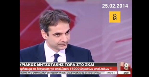 Για να μην ξεχνούμε την αληθινή πολιτική στην οποία πιστεύει η ΝΔ, κι όχι τους λαϊκισμούς του Κυριάκου Μητσοτάκη στην προσπάθεια να κερδίσει ψήφους. Ήταν 25 Φεβρουαρίου, το 2014, όταν ο τότε υπουργός Διοικητικής Μεταρρύθμισης της κυβέρνησης Σαμαρά- Βενιζέλου, Κυριάκος Μητσοτάκης, παρουσίαζε το πρόγραμμα της ΝΔ για τη Δημόσια Υγεία: Διαθεσιμότητα και απολύσεις 7.900 γιατρών και υγειονομικού προσωπικού. Αλλά και απολύσεις, συνολικά, 25.000 από τον δημόσιο τομέα.