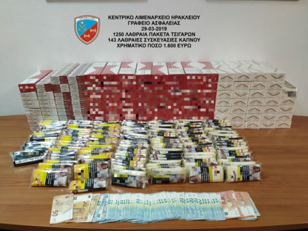 Συγκεκριμένα οι ανωτέρω, εντοπίστηκαν στο Ηράκλειο να κινούνται πεζοί, μεταφέροντας τρεις χαρτοκουτες, οι οποίες σε έλεγχο που διενεργήθηκε διαπιστώθηκε ότι περιείχαν χίλια διακόσια πενήντα (1.250) λαθραία πακέτα τσιγάρων, διαφόρων επωνυμιών και εκατόν τριάντα τέσσερις (134) λαθραίες συσκευασίες καπνού των 50γρ. έκαστη.