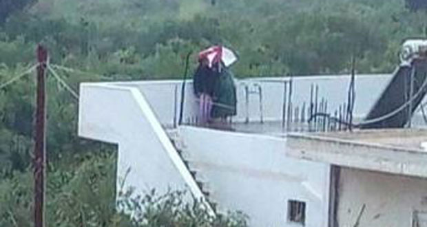 Οικογένεια που διαμένει στην περιοχή βλέποντας τα νερά ανέβηκε στην ταράτσα του σπιτιού της και παρέμεινε εκεί.