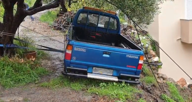 Υποχώρησε τράφος στην Κριτσά – Παραλίγο να πέσει και αυτοκίνητο (Βίντεο)