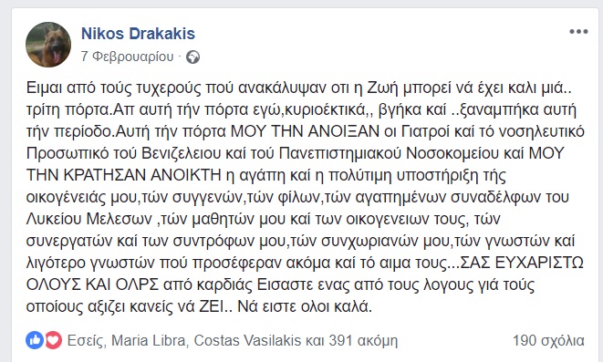 Δείτε τις συγκλονιστικές του αναφορές στο facebook όταν πλέον είχε αναρρώσει