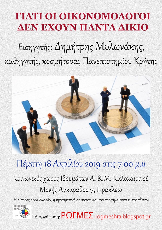 «Γιατί οι οικονομολόγοι δεν έχουν πάντα δίκιο;»- Εκδήλωση από τις “Ρωγμές” με τον καθηγητή Δ. Μυλωνάκη