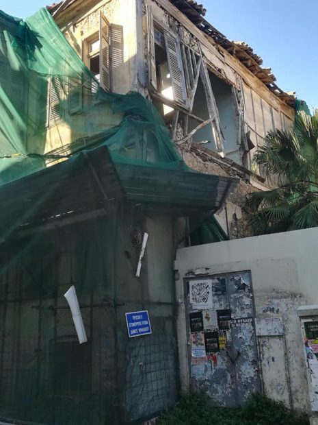 Πρόκειται για παλιό κτίσμα που βρίσκεται απέναντι από τον Άγιο Μηνά, στο οποίο έχουν μπει περιφράξεις, ωστόσο, όπως δείχνουν και οι φωτογραφίες που δημοσιεύει ο πολίτης στην ομάδα Ηράκλειο Κουασιμόδια Πόλη, το κτίριο αποτελεί κίνδυνο για περαστικούς πεζούς αλλά και για οχήματα που περνούν από το σημείο, καθώς η οδός Αγίου Μηνά αποτελεί έναν από τους κεντρικότερους δρόμους της πόλης.