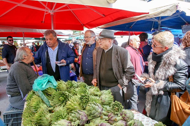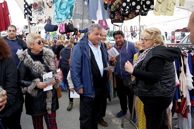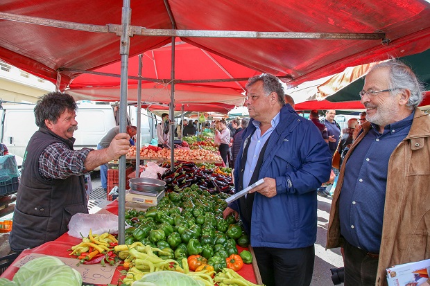 Συνοδευόμενος από υποψήφιους δημοτικούς συμβούλους ο κ Λυγερός είχε την ευκαιρία να συνομιλήσει με παραγωγούς και εμπόρους που δραστηριοποιούνται στο χώρο των λαϊκών.