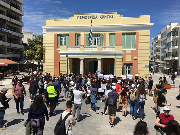 Διαδήλωση και πορεία υπέρ της Ασφαλούς οδήγησης και πρόληψης τροχαίων ατυχημάτων έγινε σήμερα με κατάληξη στην Περιφέρεια Κρήτης και οργάνωσε το 6ο ΕΠΑΛ Ηρακλείου σε συνεργασία με τον Σύλλογο Μοτοσυκλετιστών Σκαλανίου και το Bikers Club Κρήτης.
