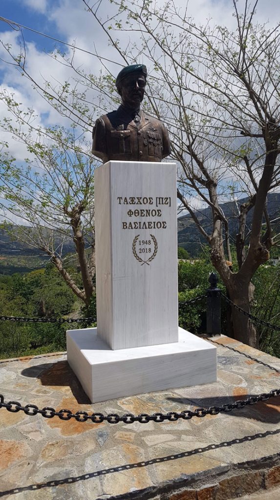 Ήρωα του ελληνικού στρατού Βασίλη Φθενέ! Τίμησες με τη ζωή και τη δράση σου τον τόπο που σε μεγάλωσε και αργότερα σε τίμησε, αναθέτοντάς στα χέρια σου την ευθύνη της καθοδήγησής του. Σου ανταποδίδουμε κι εμείς σήμερα μέρος από τα οφειλόμενα. Αθάνατος!».