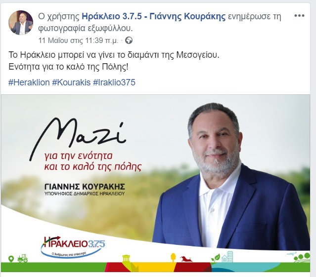Τώρα, μετά από μια θητεία στην αντιπολίτευση, που τον οδήγησε όμως να υπηρετήσει την Επιτροπή Περιφερειών της ΕΕ κι όχι την πόλη του Ηρακλείου, διεκδικεί την επιστροφή του στο δημαρχιακό αξίωμα, για μια τέταρτη θητεία, στην οποία διακηρύττει ότι θέλει να κάνει το Ηράκλειο “διαμάντι της Μεσογείου”, να αξιοποιήσει τα Ενετικά Τείχη και τα μνημεία, να γεμίσει πράσινο την πόλη, να κάνει σχέδιο και χωροταξική ανάπτυξη, να διαμορφώσει υποδομές, να ενισχύσει το εισόδημα των κατοίκων από τις επιχειρηματικές τους δραστηριότητες και άλλα πολλά που θα δείτε στη συνέχεια ότι στοχεύει (εικόνες παρακάτω) στην… τέταρτη θητεία!