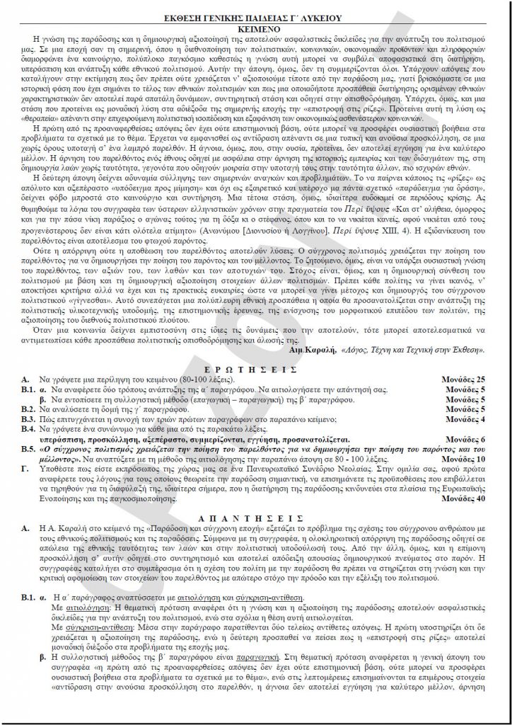 Σήμερα τα προτεινόμενα θέματα στις Αρχές Οικονομικής Θεωρίας Γ’ Λυκείου και στην Έκθεση Γενικής Παιδείας Γ’ Λυκείου.