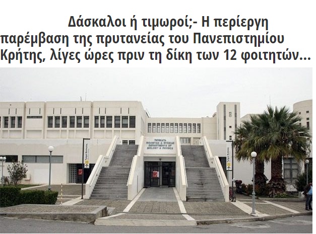 Με την περίπτωση του απροκάλυπτου πρύτανη – προπαγανδιστή της ΝΔ, έχουμε ασχοληθεί και με άλλες αφορμές. Η κομματική του καριέρα στο ακαδημαϊκό αξίωμα (…) ξεκίνησε με την υπόθεση της δίωξης των 12 φοιτητών του Φυσικού. Σε μια από τις δίκες των φοιτητών, τον Φεβρουάριο του 2017, παρακινούσε το δικαστήριο, ως πρυτανεία, να καταδικαστούν οι φοιτητές, αλλά να μην τους δοθεί η ανώτατη ποινή!