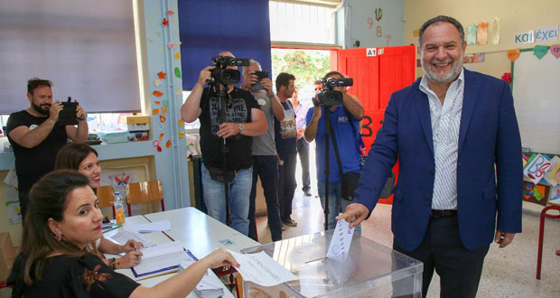 Στη γειτονιά του στα Καμίνια άσκησε το εκλογικό του δικαίωμα ο Γιάννης Κουράκης.