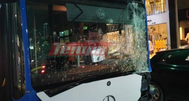 Αμέσως στο σημείο έσπευσαν Αστυνομικοί, ενώ ο οδηγός μετακίνησε το λεωφορείο στην οδό Κορίνθου.