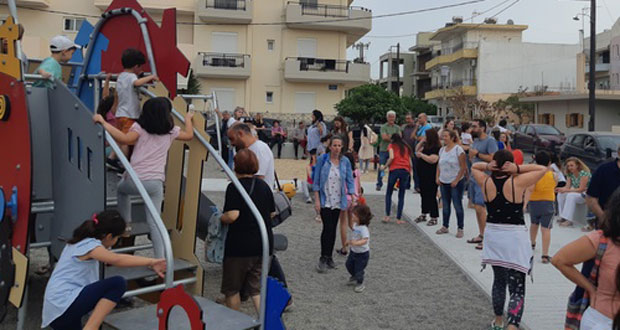 Ακόμα μια παιδική χαρά, την τέταρτη τις τελευταίες δυο εβδομάδες, εγκαινίασε το απόγευμα της Τρίτης 4 Ιουνίου ο Δήμαρχος Ηρακλείου Βασίλης Λαμπρινός.