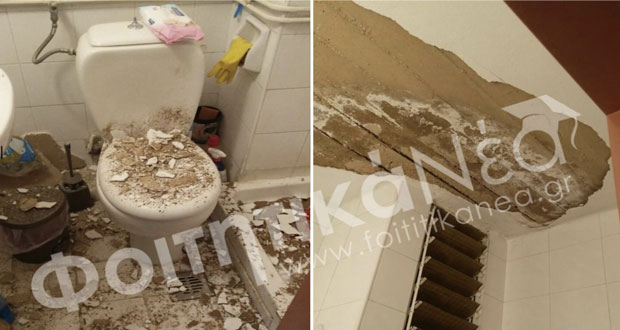 Αίσθηση έχει προκαλέσει στον φοιτητικό κόσμο στα Ιωάννινα περιστατικό που συνέβη στο στην φοιτητική εστία της πόλης, όταν μια κοπέλα την ώρα που έκανε μπάνιο, είδε το ταβάνι της τουαλέτας να πέφτει στο πάτωμα