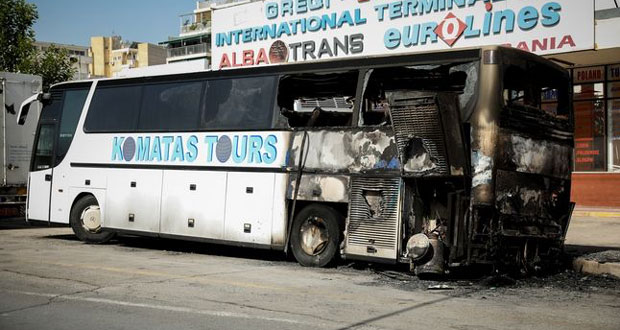 Στόχος εμπρηστικής επίθεσης έγινε σταθμευμένο πούλμαν αλβανικού ταξιδιωτικού γραφείου, στο Μεταξουργείο. Το πούλμαν καταστράφηκε ολοσχερώς