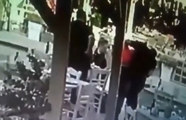 Όπως φαίνεται και στο σχετικό βίντεο ο πελάτης, που έτρωγε στο κατάστημα με την φίλη του φαίνεται να αντιμετωπίζει πρόβλημα, το οποίο γίνεται αντιληπτό από τους υπαλλήλους της ταβέρνας
