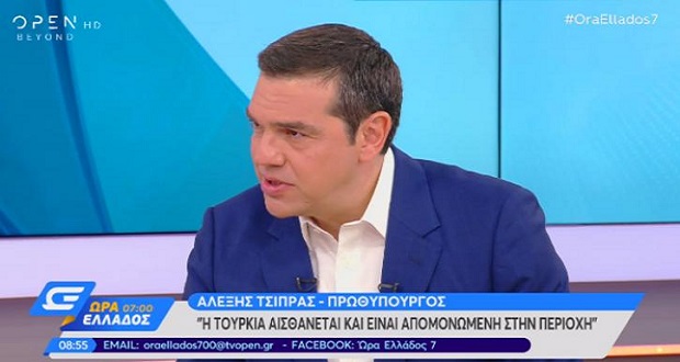 Οι κινήσεις της Τουρκίας είναι ένδειξη της αδυναμίας της και της απομόνωσής της στην περιοχή, ανέφερε ο πρωθυπουργός, Αλέξης Τσίπρας, μιλώντας στην πρωινή εκπομπή του Open «Ώρα Ελλάδος 7:00» και τους δημοσιογράφους Ιορδάνη Χασαπόπουλο και Γιάννη Σαραντάκο
