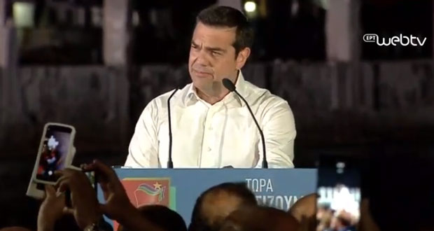 Ο κ. Τσίπρας είπε ότι ο κ. Μητσοτάκης ανησυχεί και γι’ αυτό έσπευσε να ανασύρει «από τα συρτάρια του άλλο έναν εκβιασμό, ένα παραμύθι με Δράκο, μπας και εκβιάσει τους ψηφοφόρους να τον ψηφίσουν», δηλαδή ότι αν δεν λάβει, όχι τη νίκη, αλλά τη «λευκή επιταγή», θα έχουμε και άλλες εκλογές, με απλή αναλογική, μέσα στο Δεκαπενταύγουστο. «Η Παναγιά μαζί μας, δηλαδή», σχολίασε ο πρωθυπουργός.