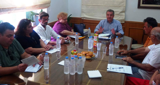 Στη σύσκεψη στη Περιφέρεια, παρουσία, των υπηρεσιακών στελεχών Καίτης Ιερωνυμάκη, Μιχάλη Ψαρουδάκη, Μανόλη Φακουκάκη και Άννας Ροβύθη, έγινε αναλυτική ενημέρωση για την πορεία εκτέλεσης των έργων στο νησί.
