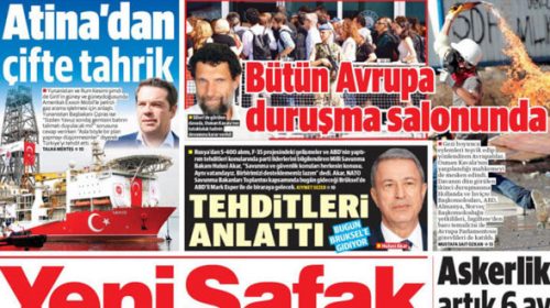 Στη γραμμή που χαράζει ο Ρετζέπ Ταγίπ Ερντογάν κινείται, φυσικά, και ο φιλοκυβερνητικός τύπος στην Τουρκία. Χαρακτηριστικό το σημερινό (26.06.2019) πρωτοσέλιδο της Yeni Safak που κάνει λόγο για… δικαιώματα στην περιοχή νότια της Κρήτης όπου θα γίνουν έρευνες από την ExxonMobil. Πριν από μερικές μέρες, ο Έλληνας πρωθυπουργός Αλέξης Τσίπρας, κατά τη συνέντευξη μετά τη Σύνοδο Κορυφής όπου η Ευρωπαϊκή…