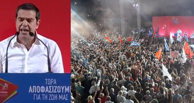 «Έχουμε μπροστά μας την πιο κρίσιμη εβδομάδα. Την τελική ευθεία. Δεν κυνηγάμε ανεμόμυλους. Η ανατροπή θα έρθει εφόσον ο καθένας & η καθεμία από μας φέρει στην κάλπη άλλον έναν άνθρωπο που θέλει να ζήσει καλύτερα σε αυτό τον τόπο», το μήνυμα του Αλέξη Τσίπρα από την κατάμεστη πλατεία Ελευθερίας του Ηρακλείου, η συγκέντρωση της οποίας είναι εντυπωσιακή και μεγαλύτερη απο αυτήν που έγινε τον Μάη.