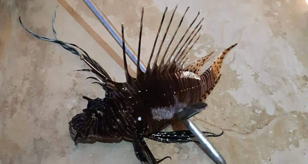 Ένα λεονταρόψαρο, από τα πλέον επικίνδυνα ψάρια, καμάκωσε ψαροτουφεκάς σε πετρώδη βυθό πολυσύχναστου παραθαλάσσιου τουριστικού οικισμού της Μεσαράς, σύμφωνα με την τοπική σελίδα Δια-SOS-τε τη Μεσαρά.