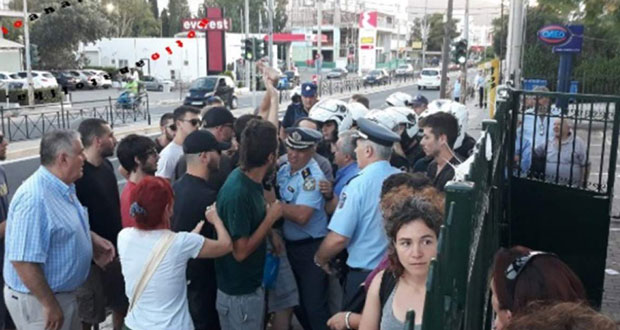 Στο σημείο έσπευσε η αστυνομία, η οποία περικύκλωσε τα εν λόγω άτομα και τα περιόρισε σε ένα σημείο.