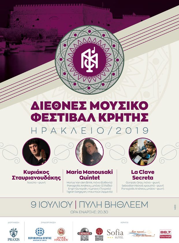 Με την στήριξη της Περιφέρειας Κρήτης, στον όμορφο χώρο της Πύλης βηθλεέμ στο Ηράκλειο, την Τρίτη 9 Ιουλίου, στις 20:30, σύμφωνα με τον οργανωτή, «θα πραγματοποιηθεί μια βραδιά με μαγευτικές μουσικές, εμπνευσμένη από παγκόσμια αναγνωρισμένα μουσικά σχήματα (με Grammy) τα οποία θα παρουσιάσουν αυθεντικές συνθέσεις με κοινή αναφορά στο Κρητικό τοπίο και συγκεκριμένα: