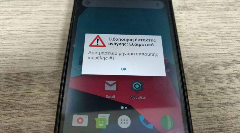 Στην δοκιμαστική άσκηση ειδοποίησης από το κέντρο επιχειρήσεων της πολιτικής προστασίας εστάλη στα κινητά τηλέφωνα μήνυμα που έγραφε «Ειδοποίηση έκτακτης ανάγκης: Ακραία κατάσταση», με την υποσημείωση ότι πρόκειται για δοκιμαστική εκπομπή μηνύματος.